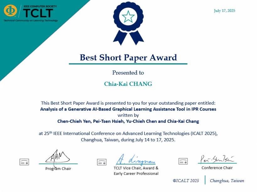 Uedu 團隊在 IEEE ICALT 共發表了 4 篇論文: